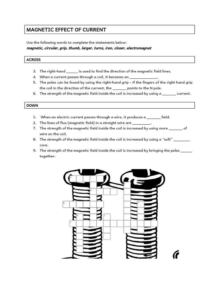 3 Magnetic Effect of Current Crossword Puzzle PDF