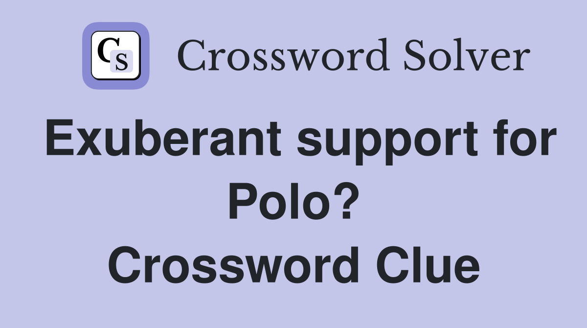 Exuberant support for Polo? Crossword Clue Answers Crossword Solver