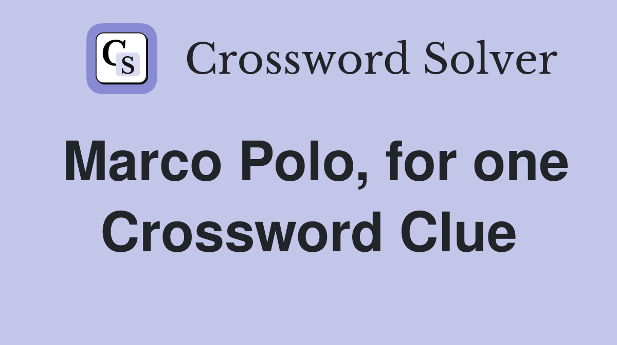 Marco Polo for one Crossword Clue Answers Crossword Solver
