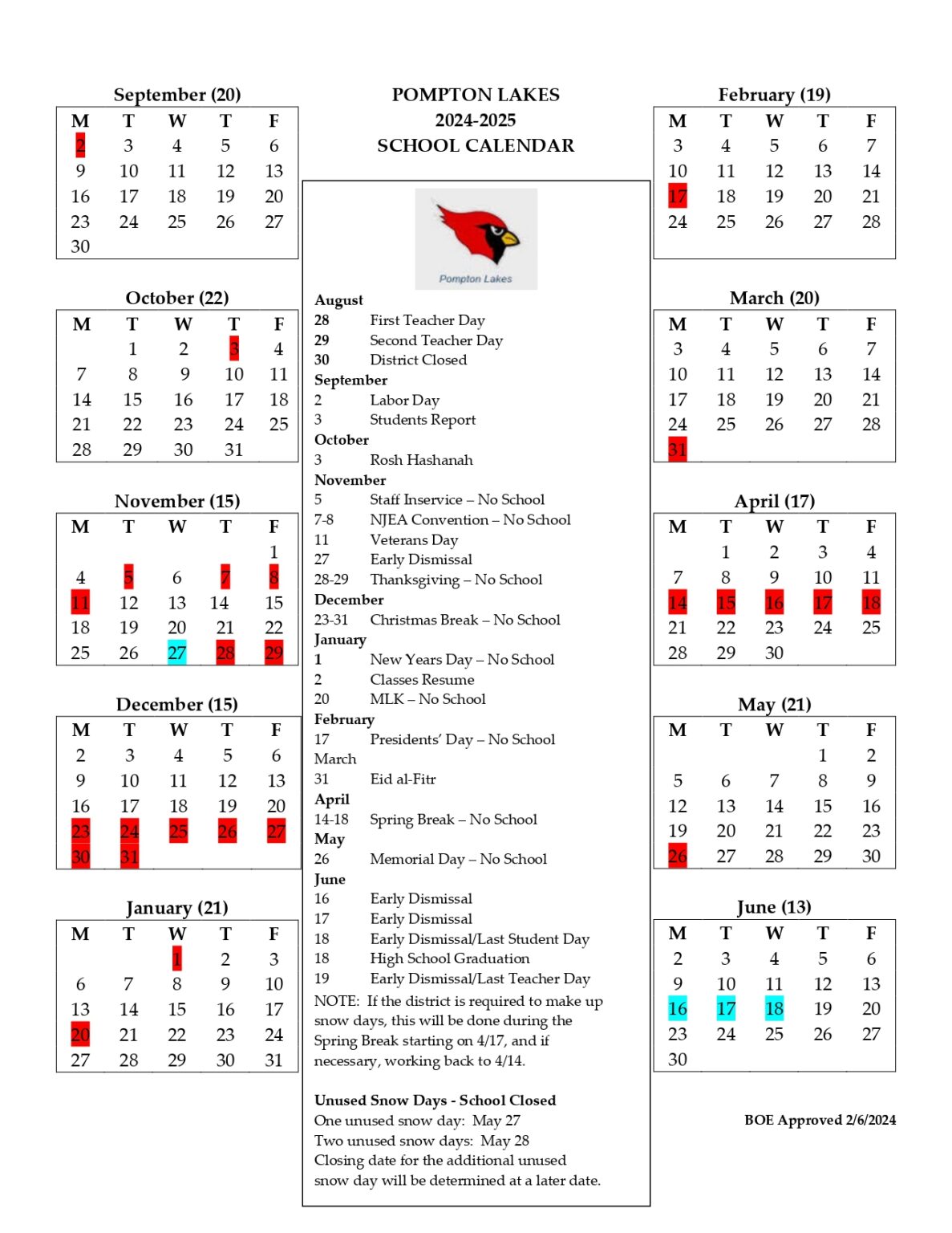 Calendar Pompton Lakes School District