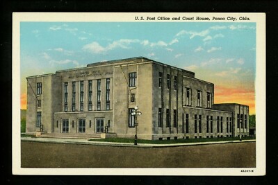 Post Office postcard Oklahoma OK Ponca City Court House globe lamps