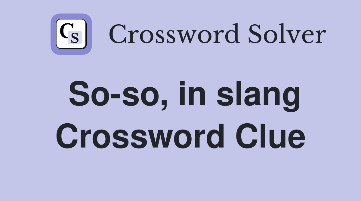 So so in slang Crossword Clue Answers Crossword Solver