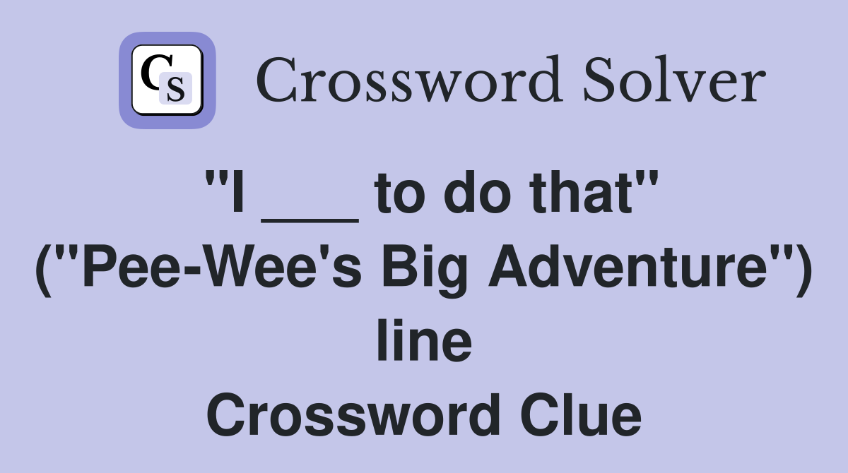 quot I to do that quot ( quotWee #39 s Big Adventure quot ) line Crossword Clue