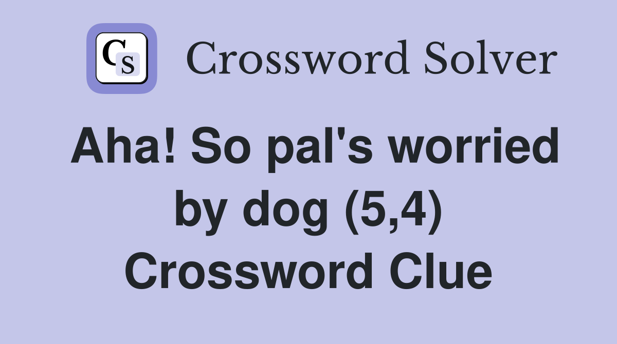 Aha So pal #39 s worried by dog (5 4) Crossword Clue Answers Crossword