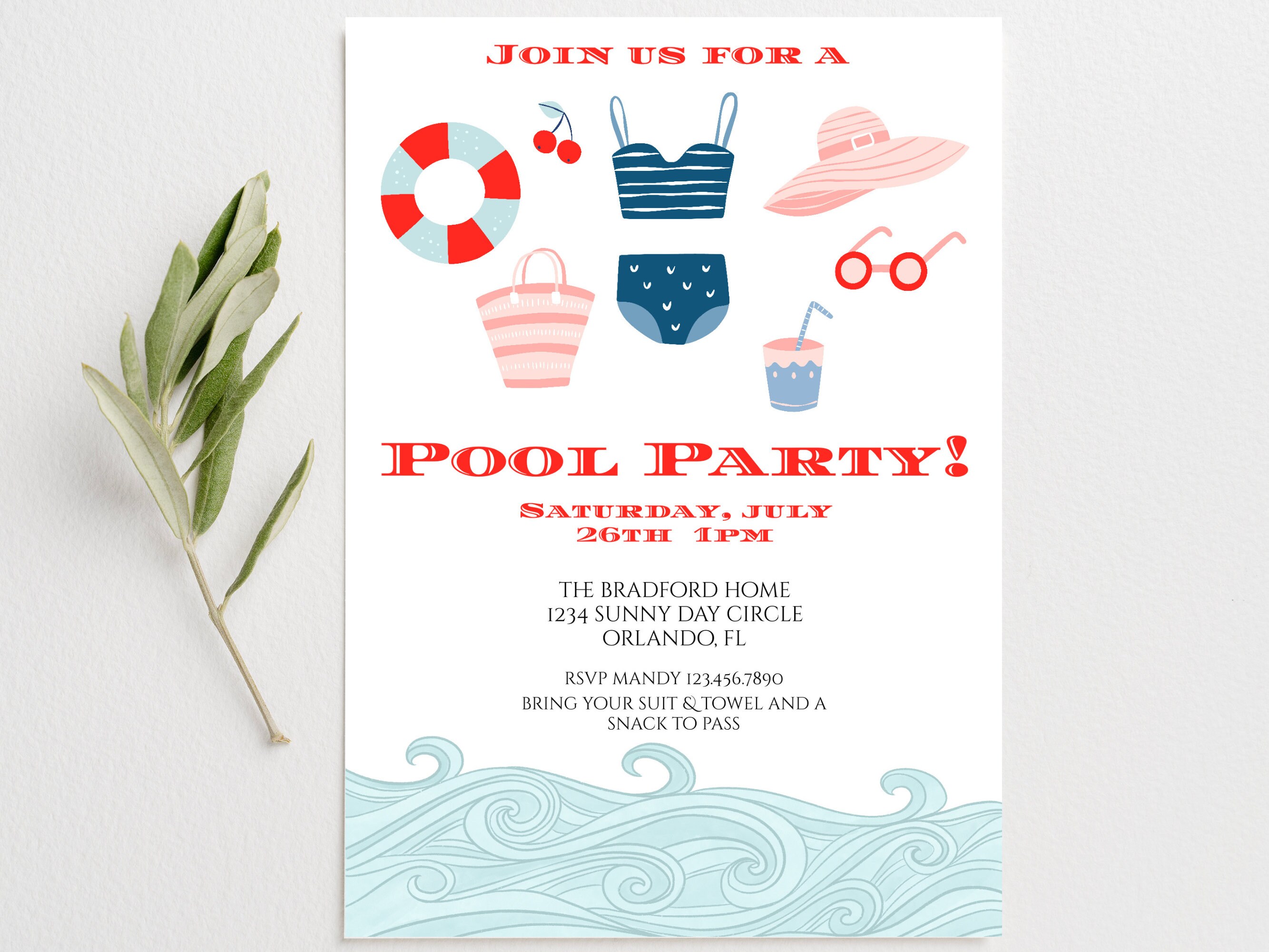 Pool Party Editable Invitation Printable Summer Pool Party Invitation