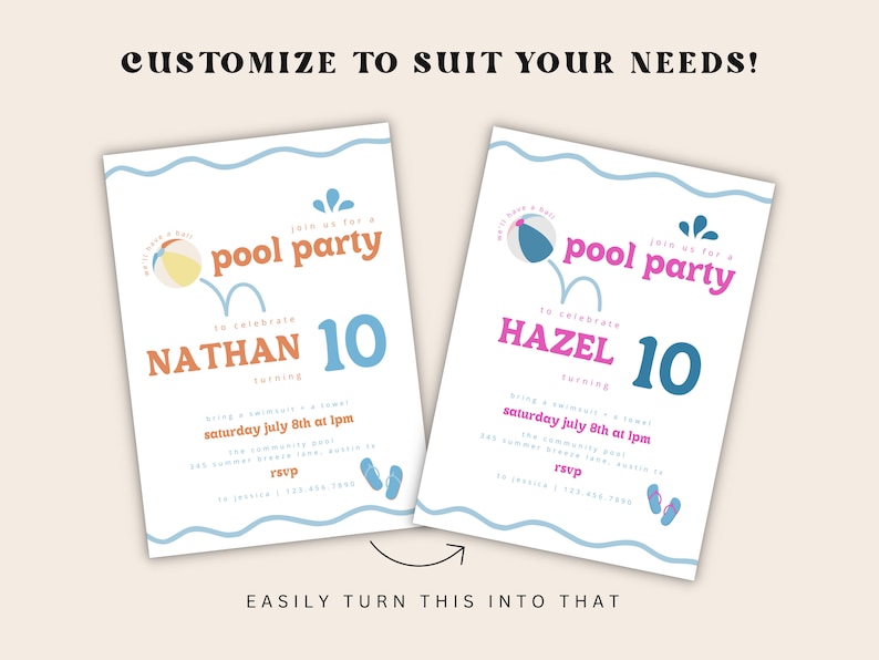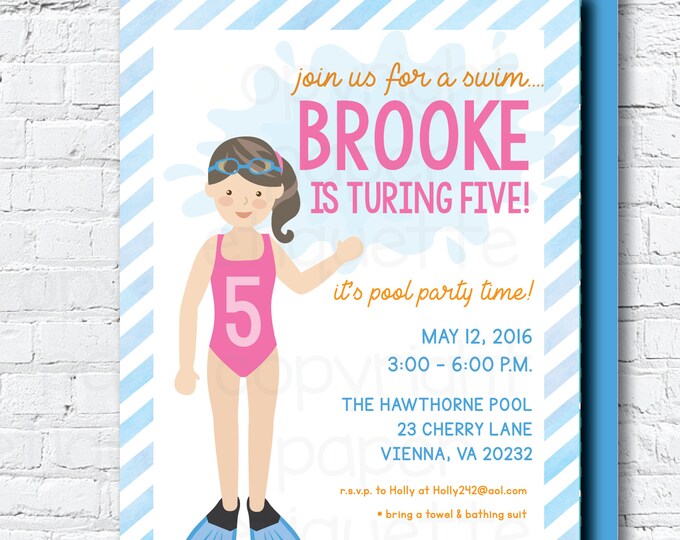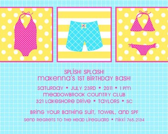 Custom Printable Neutral Pool Party Invitation Girls Digital Party