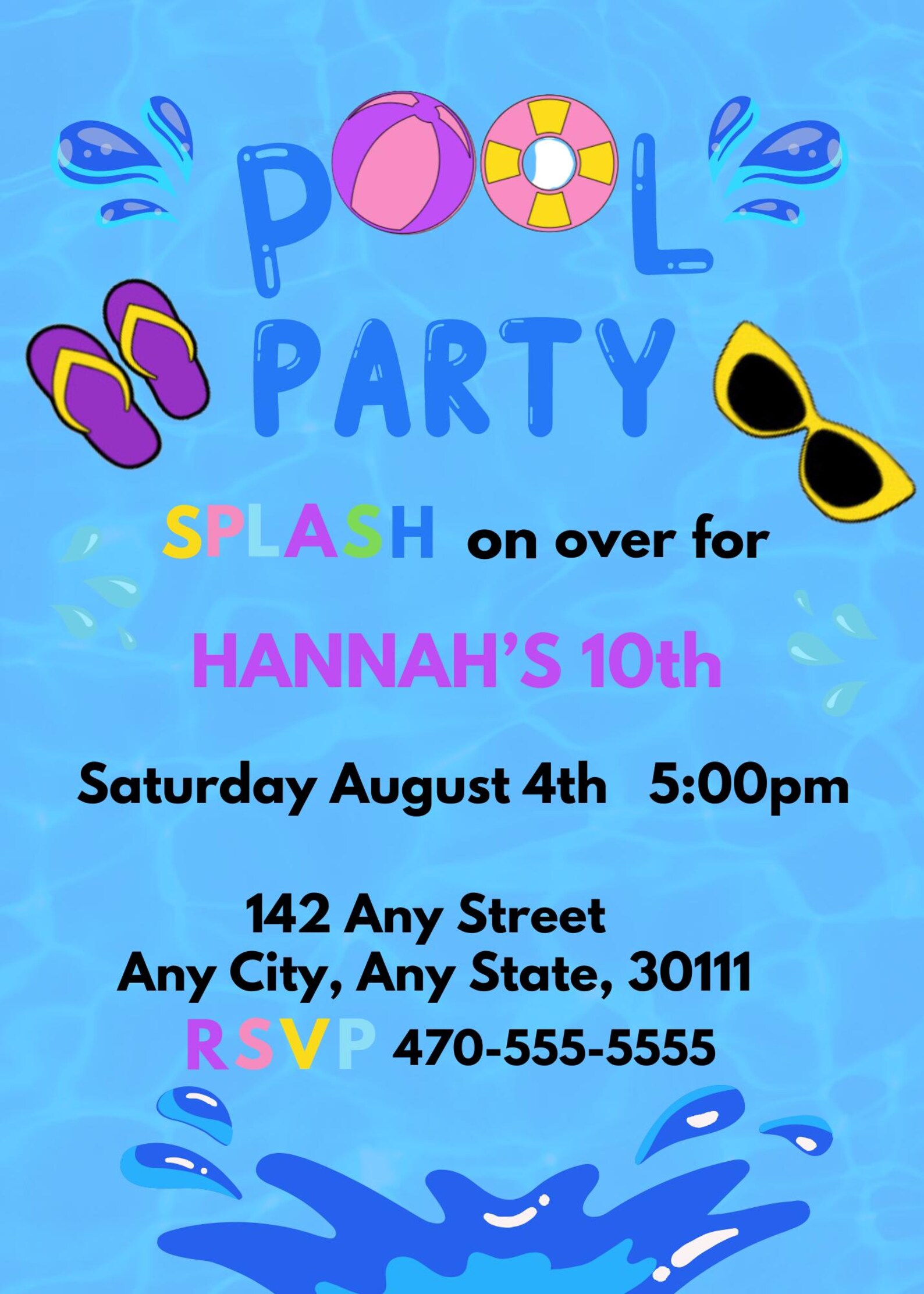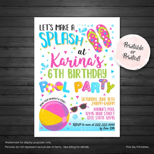 Pool Party Birthday Invitation Printable Birthday Invitation Etsy