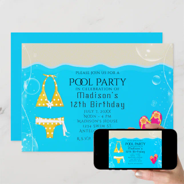 Girls Teen Pool PartyBirthday Invitation Zazzle
