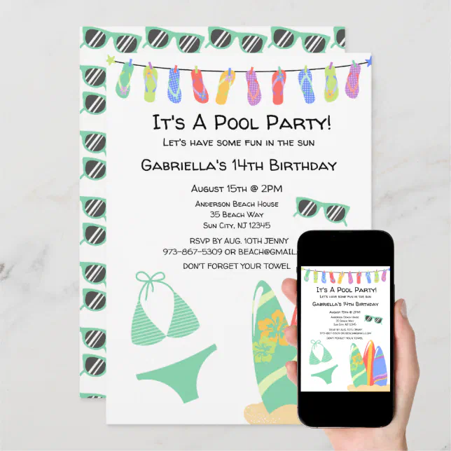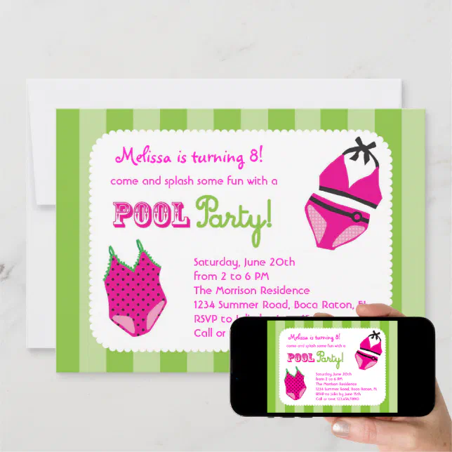 Swimsuit Pool Party Birthday Invitation Zazzle