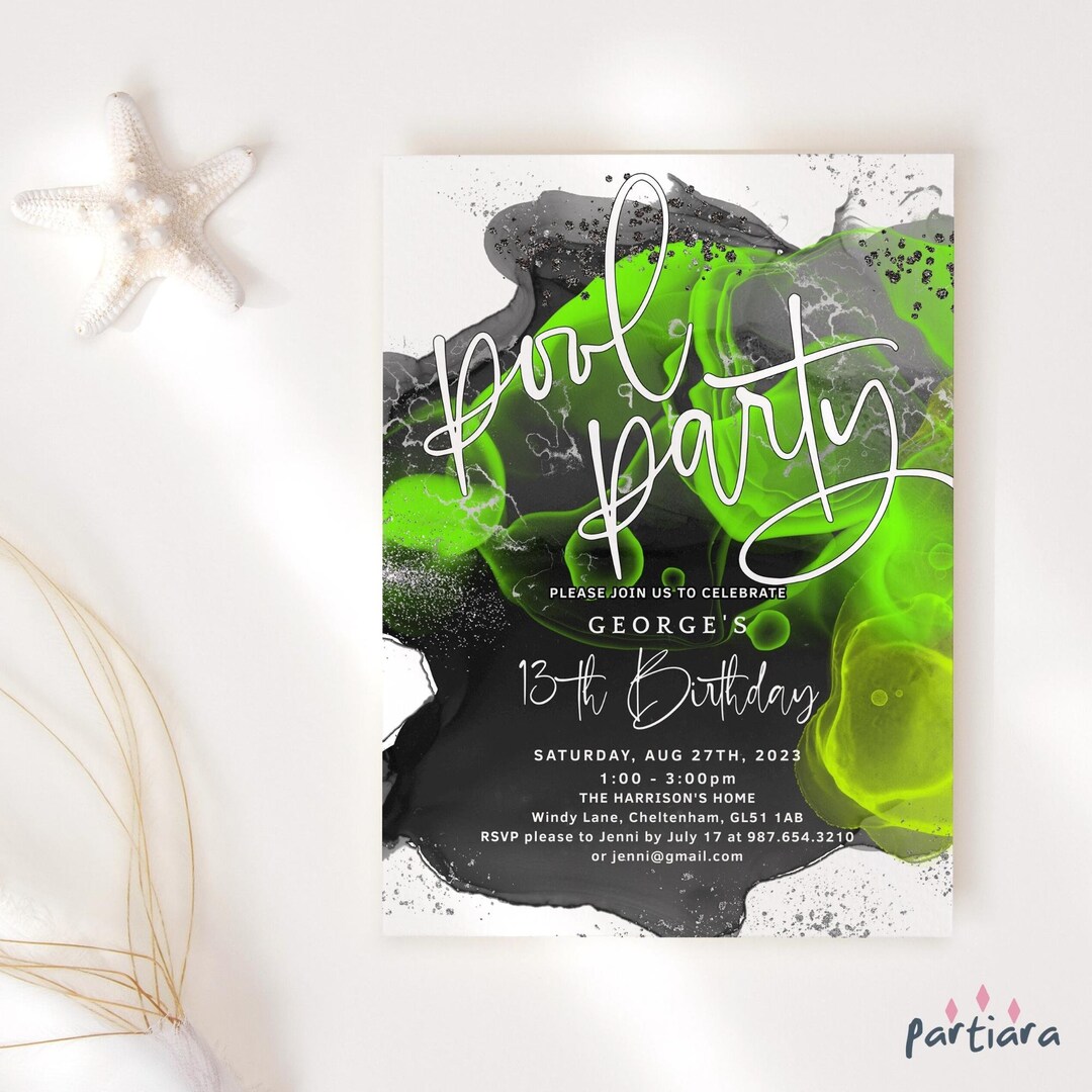 Editable Teens Pool Party Invite Template Boy Backyard BBQ Etsy