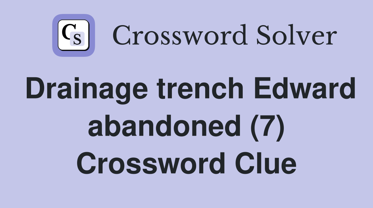 Drainage trench Edward abandoned (7) Crossword Clue Answers