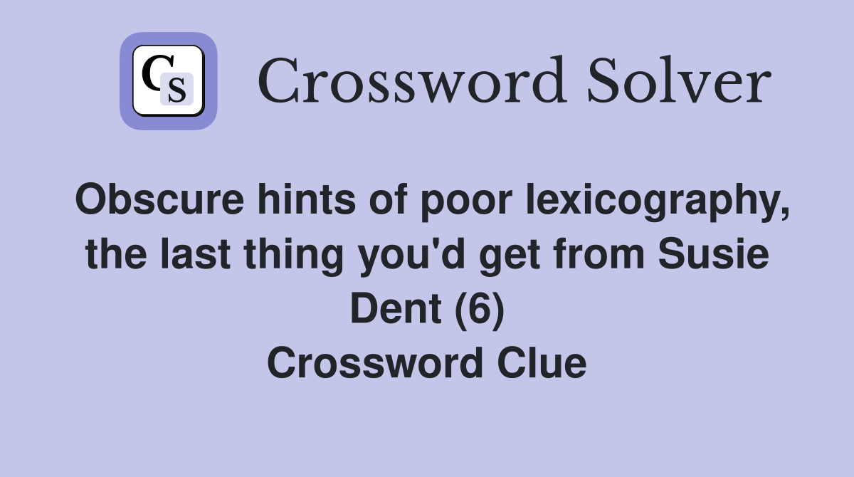 Obscure hints of poor lexicography the last thing you #39 d get from Susie