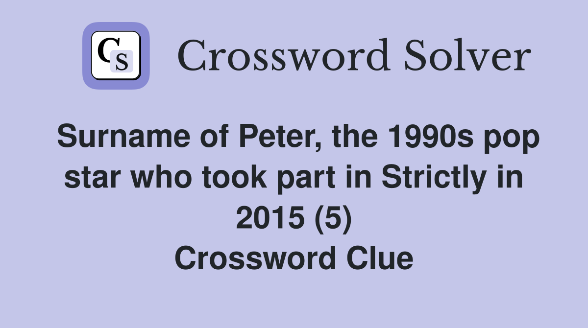 Surname of Peter the 1990s pop star who took part in Strictly in 2015