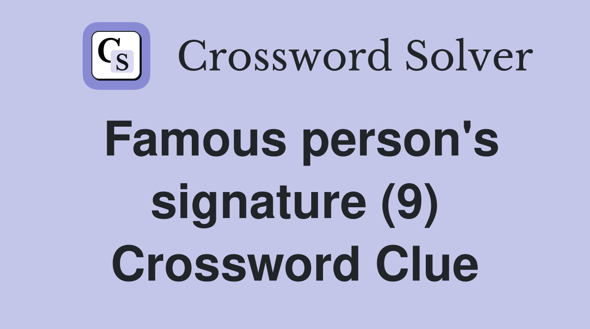 Famous person #39 s signature (9) Crossword Clue Answers Crossword Solver
