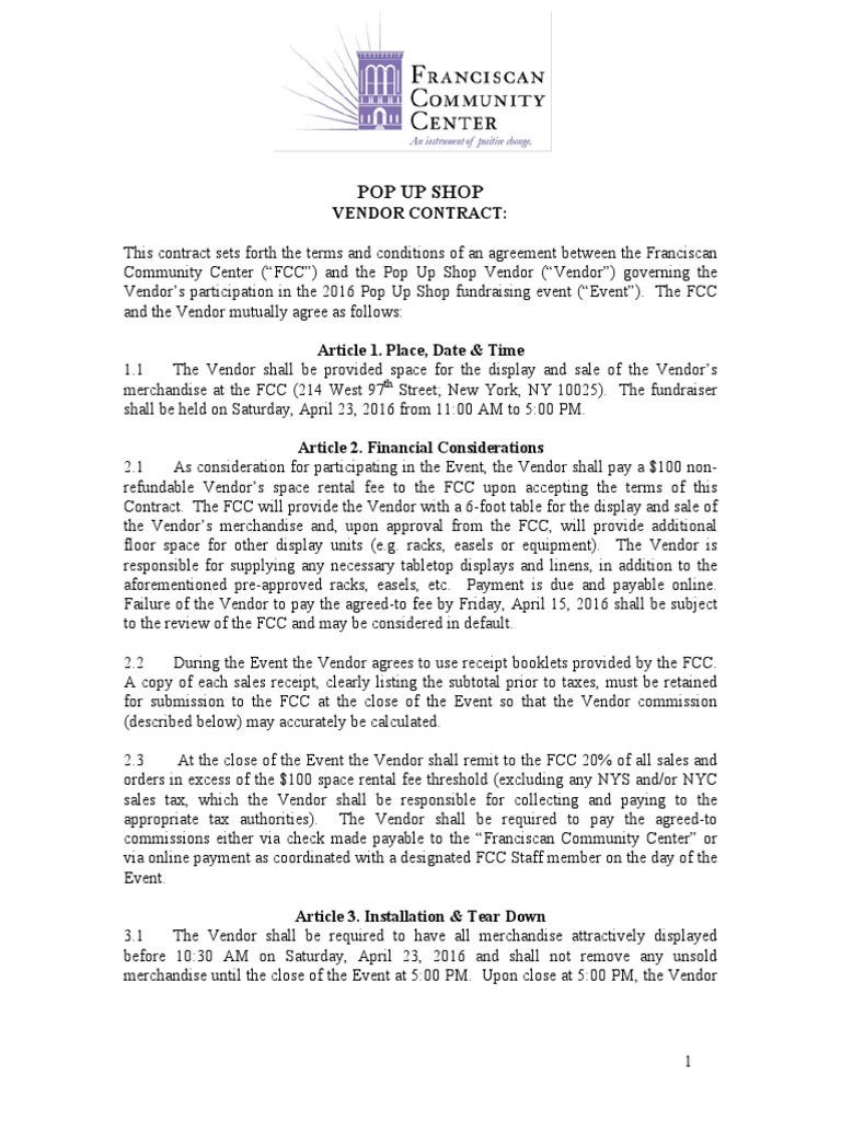 Vendor Pop up Contract Etsy
