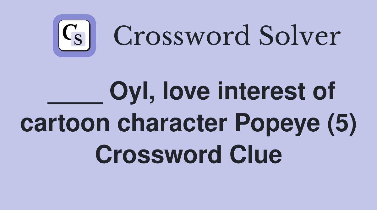 Oyl love interest of cartoon character Popeye (5) Crossword Clue
