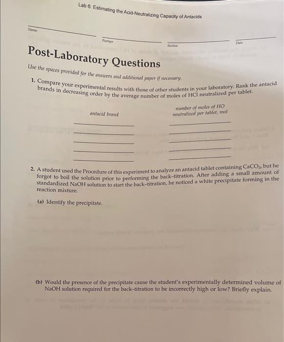 Post Laboratory Questions Use the spaces provided for Chegg com