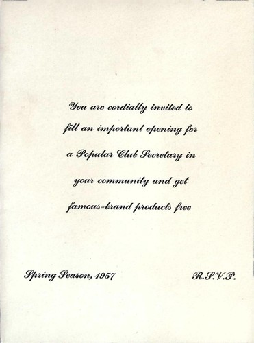 Vintage 1957 Popular Club Plan Invitation Secretary Opening Collectible