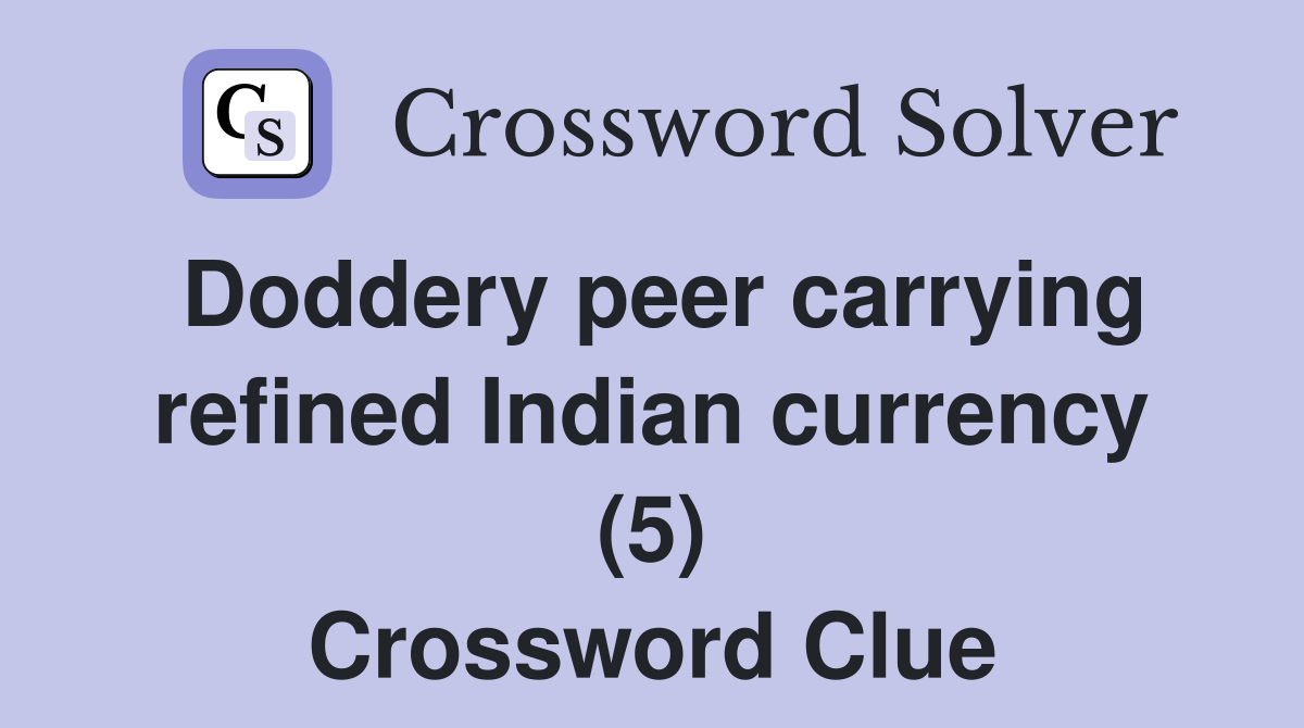 Doddery peer carrying refined Indian currency (5) Crossword Clue