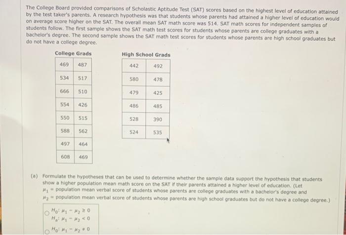 Solved The College Board provided comparisons of Scholastic Chegg com
