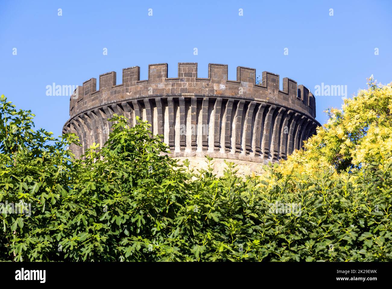 Medieval Castel Nuovo located near the Port of Naples front view of