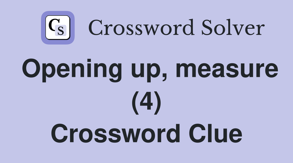Opening up measure (4) Crossword Clue Answers Crossword Solver