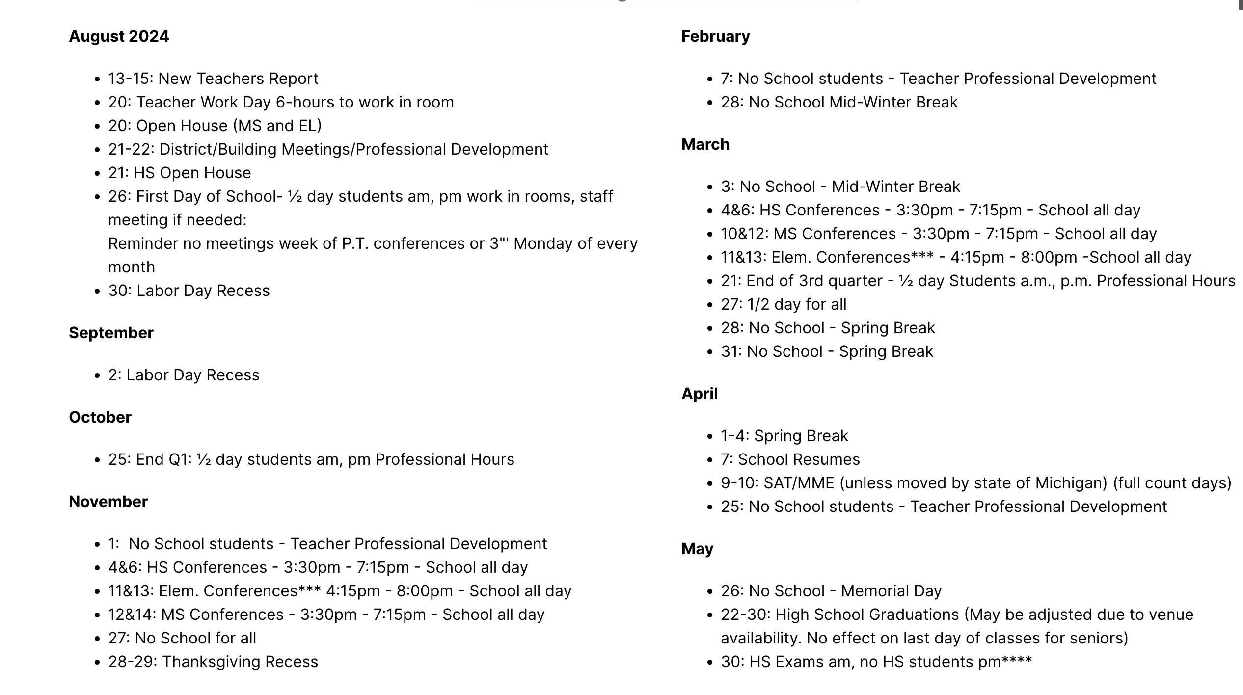 Portage Public Schools Calendar 2024 2025 Academic Holidays New