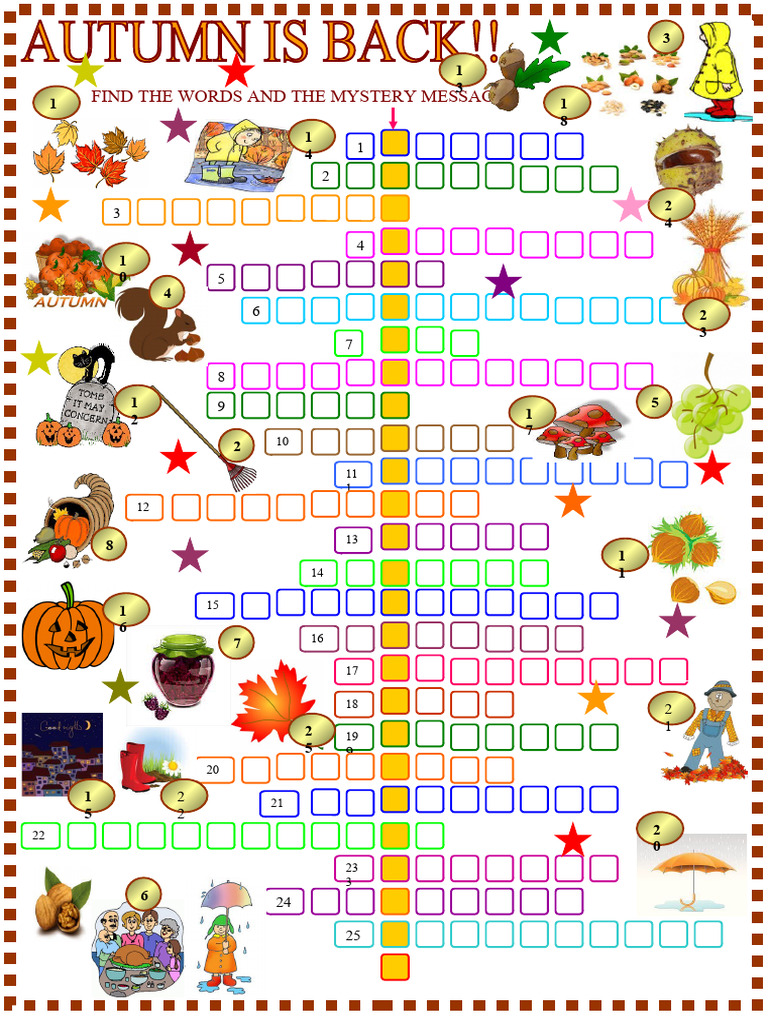Autumn Crossword With Options and Answer Key PDF Fruit Forest