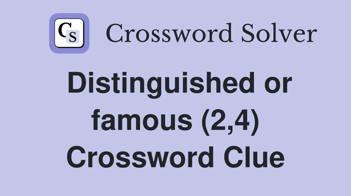 Distinguished or famous (2 4) Crossword Clue Answers Crossword Solver