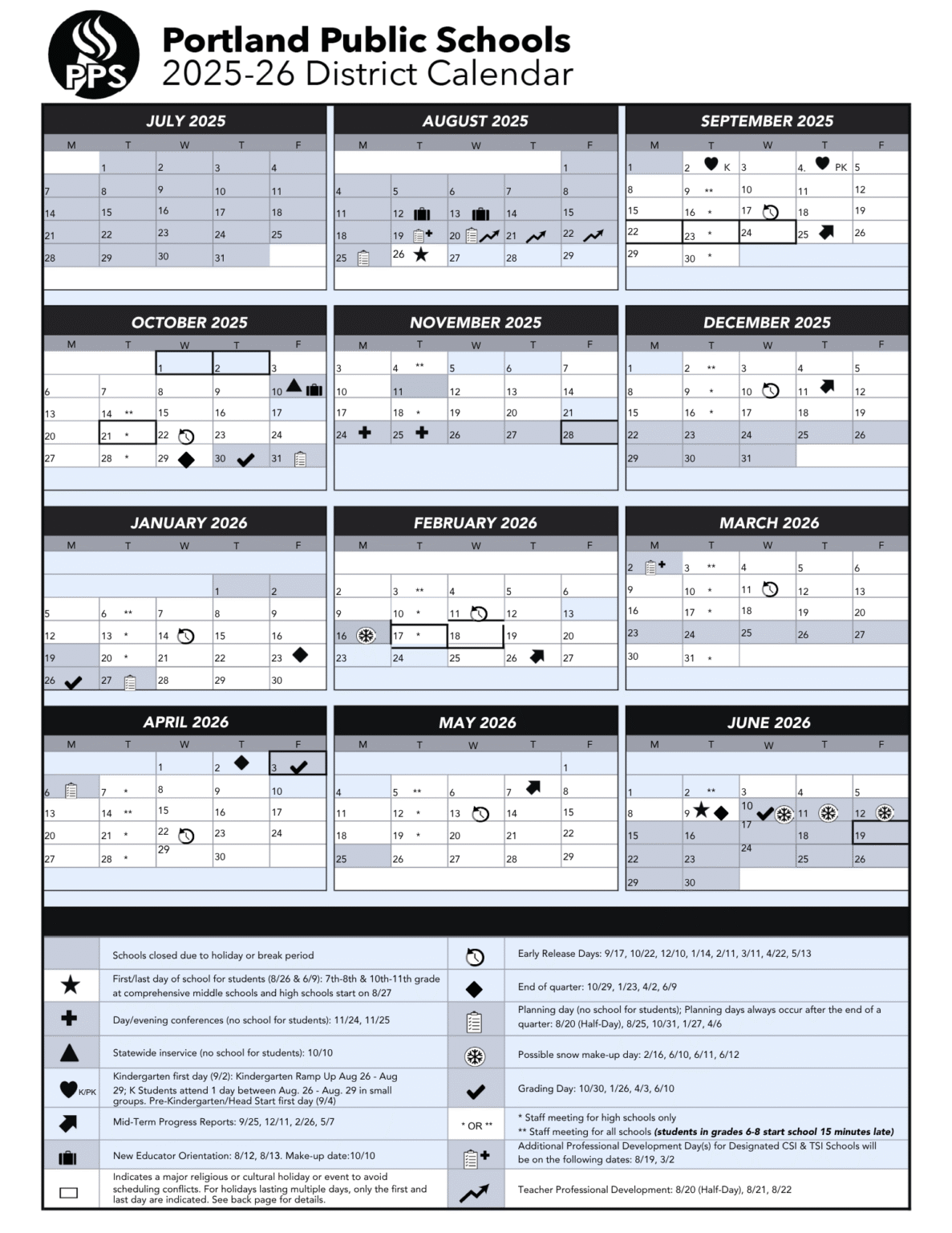 Portland Public Schools Calendar 2025 2026 PPS Holidays