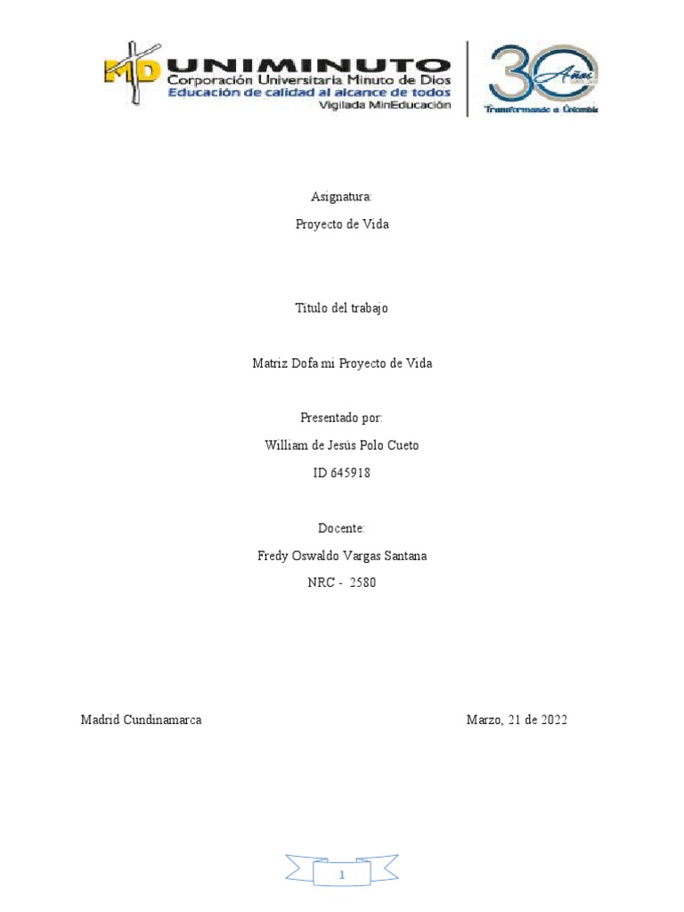Matiz Dofa Proyecto de Vida PDF Análisis FODA Cognición