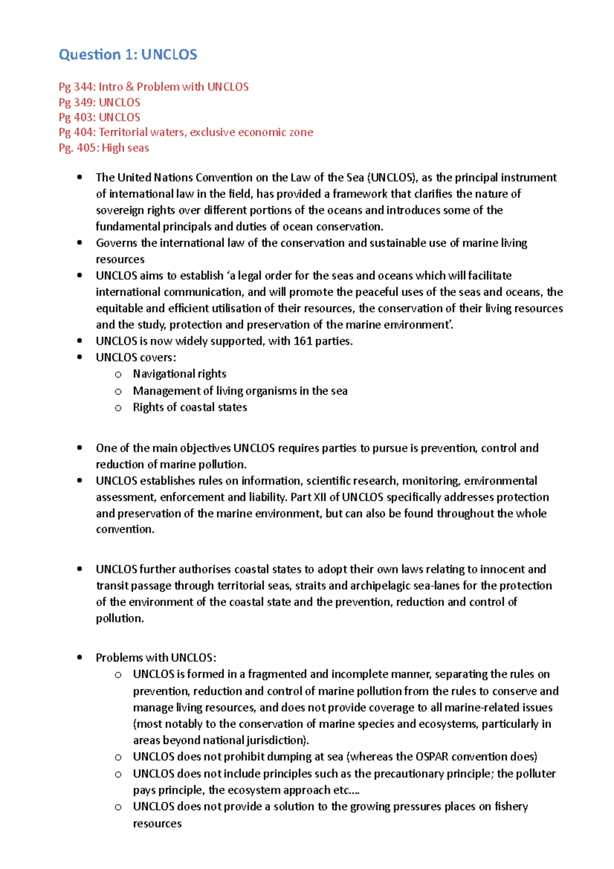 Summary complete Question 1: UNCLOS Pg 344: Intro Problem with