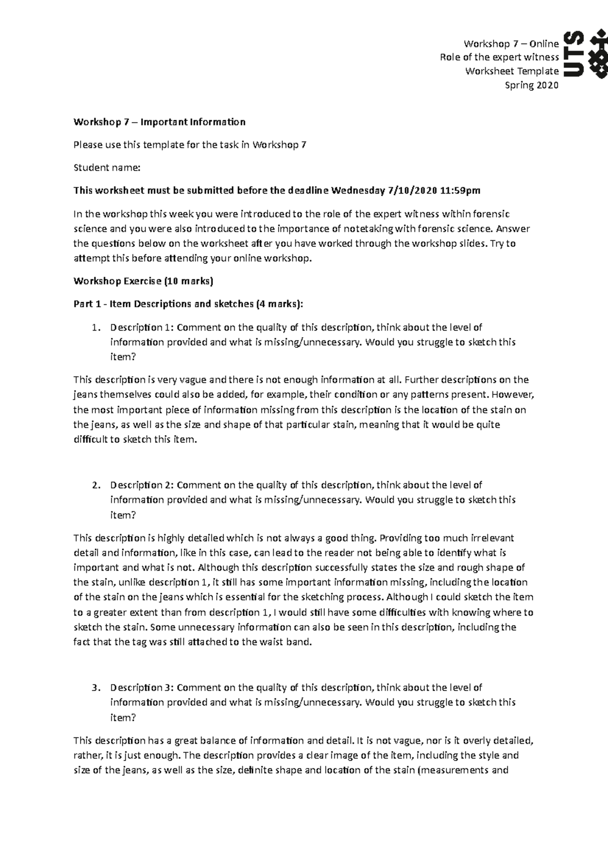 Workshop 7 Answers Role of the expert witness Worksheet Template