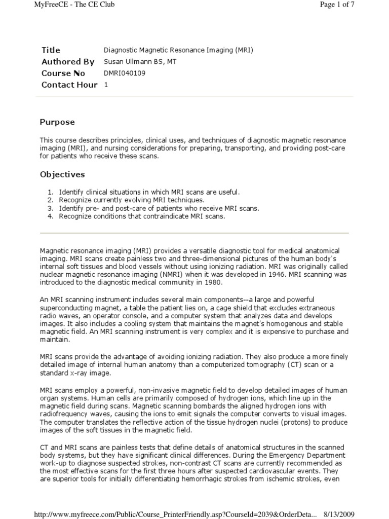 Diagnostic Magnetic Resonance Imaging (MRI) PDF Magnetic Resonance