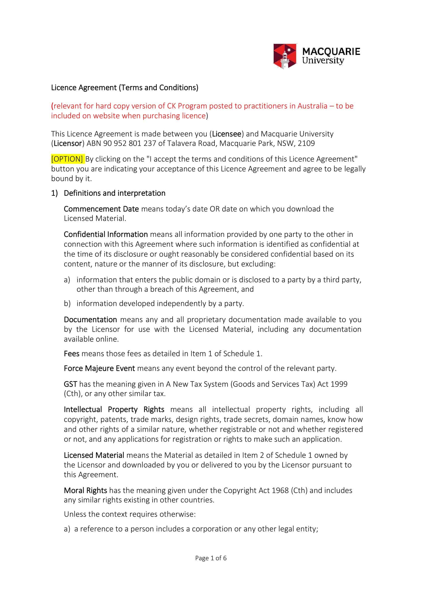 Free Printable License Agreement Templates Word PDF Software