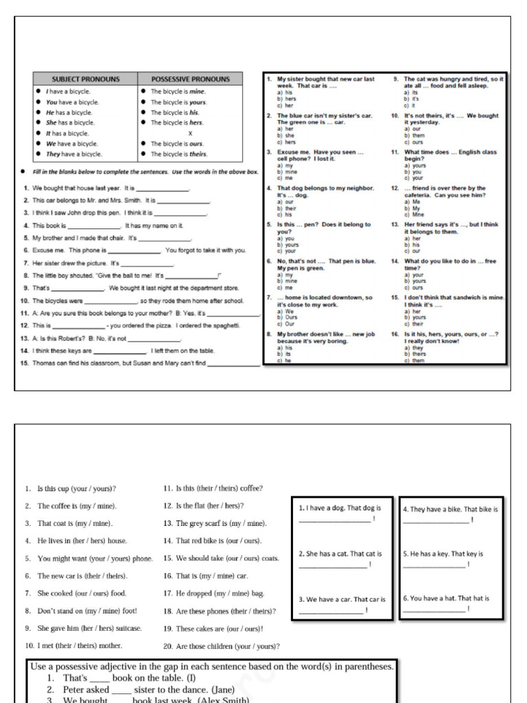 101 Possessive Pronouns PDF Worksheets with Answers Grammarism