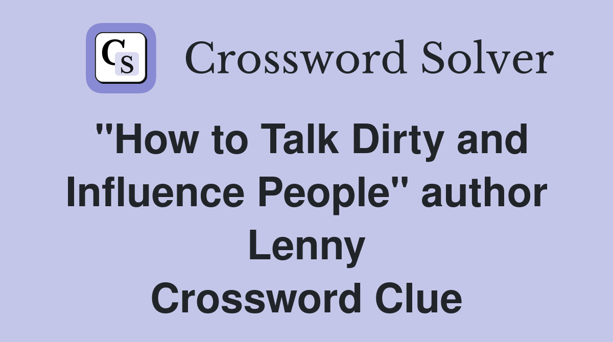 quot How to Talk Dirty and Influence People quot author Lenny Crossword Clue