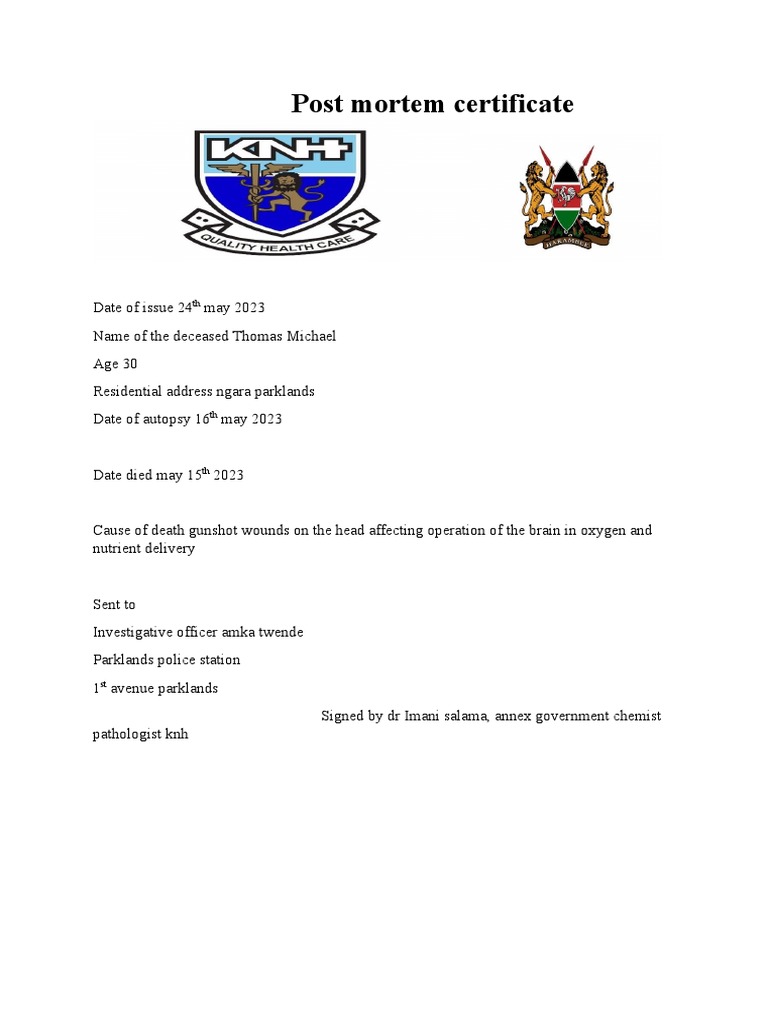Post Mortem Report Sample Post Mortem Examination Report Format