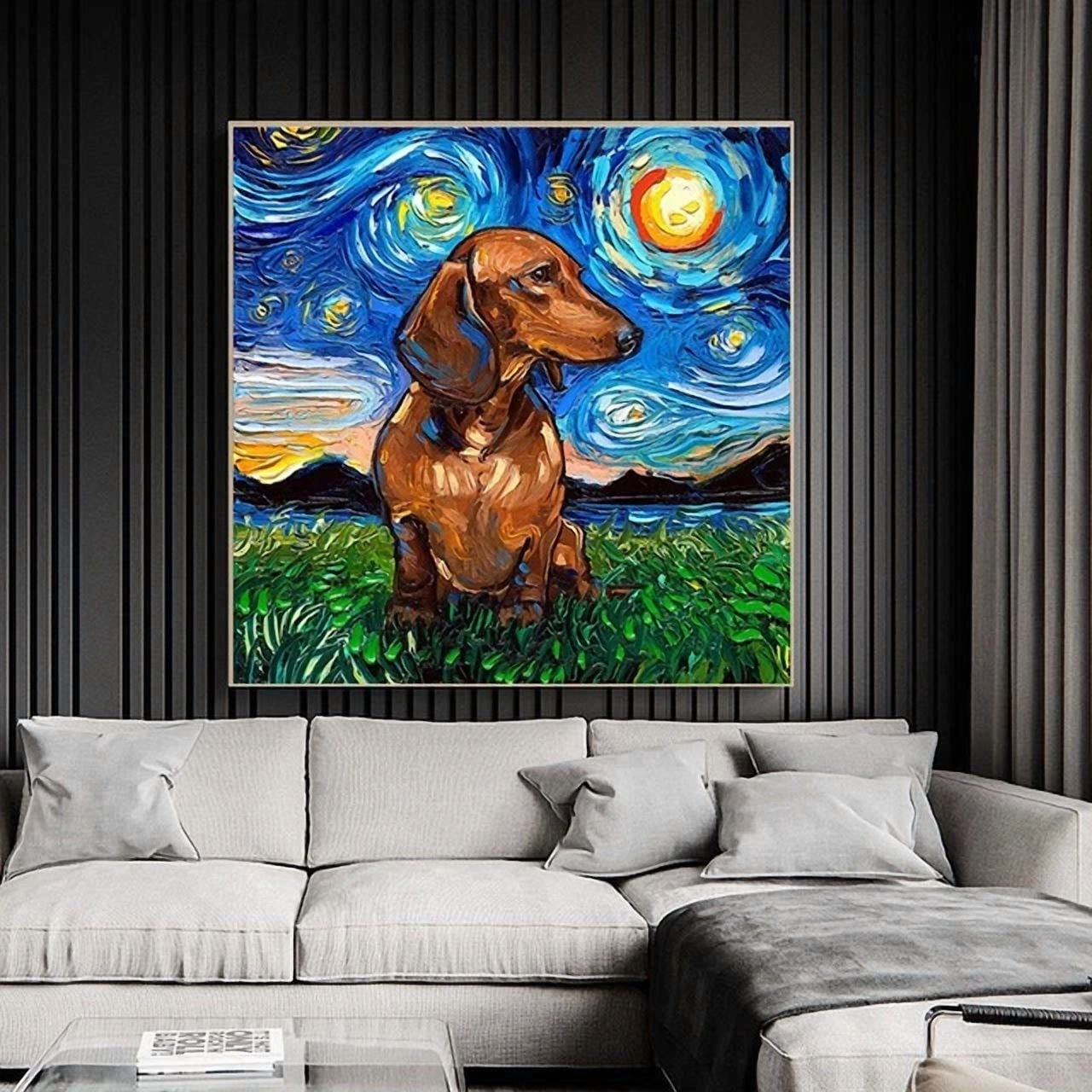 Dopaprint UNFRAMED PAPER POSTER Dachshund In Starry Night Wall Art