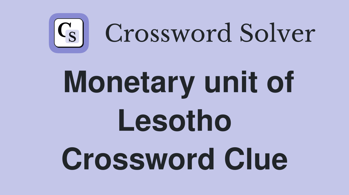 Monetary unit of Lesotho Crossword Clue Answers Crossword Solver