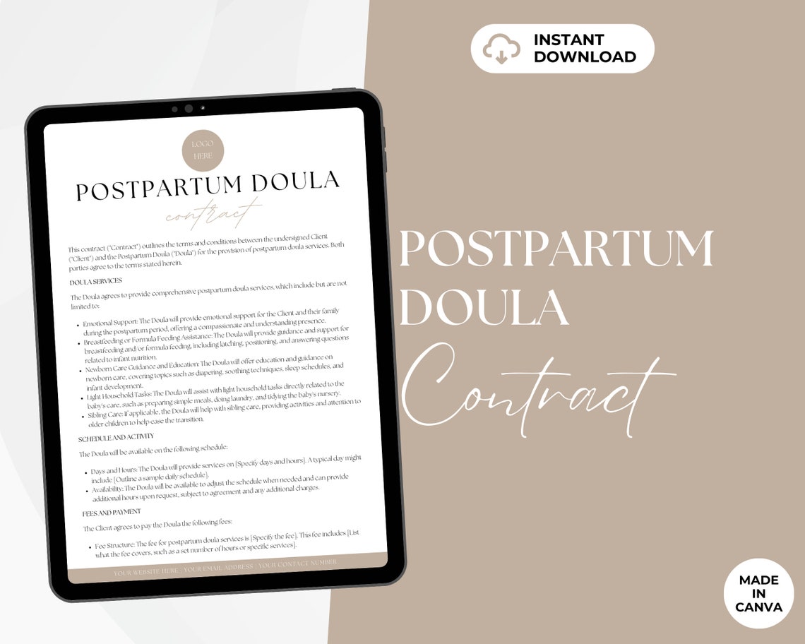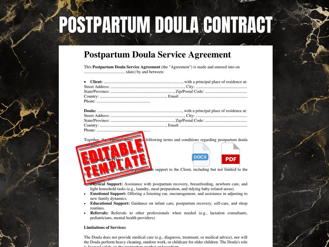 Postpartum Doula Contract Template Editable Postpartum Etsy