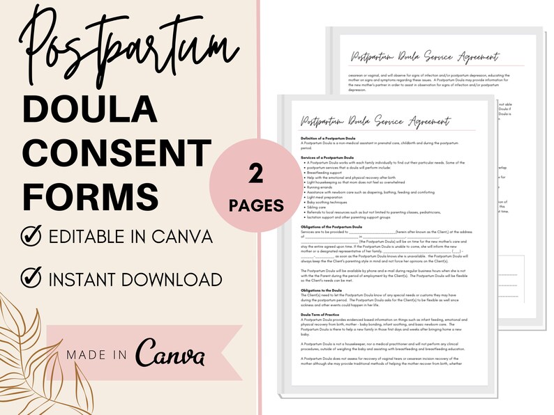 Postpartum Doula Contracts Intake Forms Template Bundle Editable