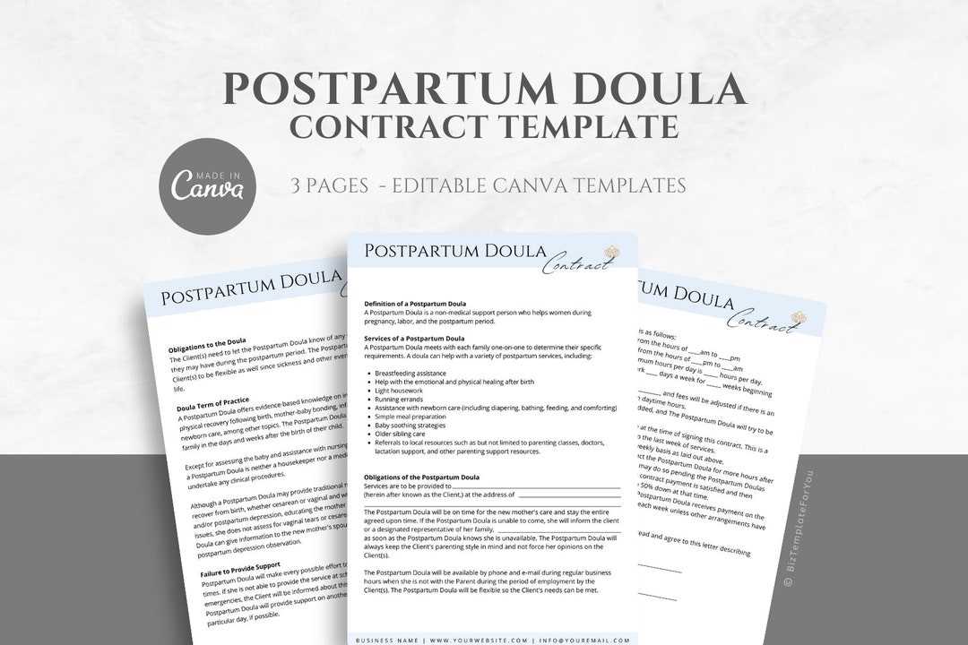 Postpartum Doula Contract Template Editable Postpartum Etsy in 2022