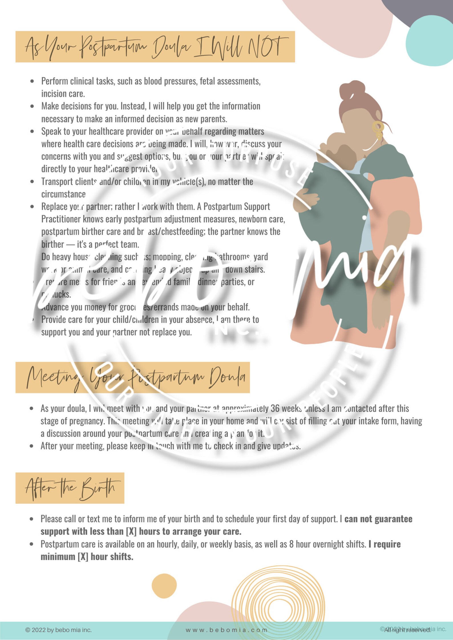 Postpartum Doula Contract and Agreement Template Mama Did It
