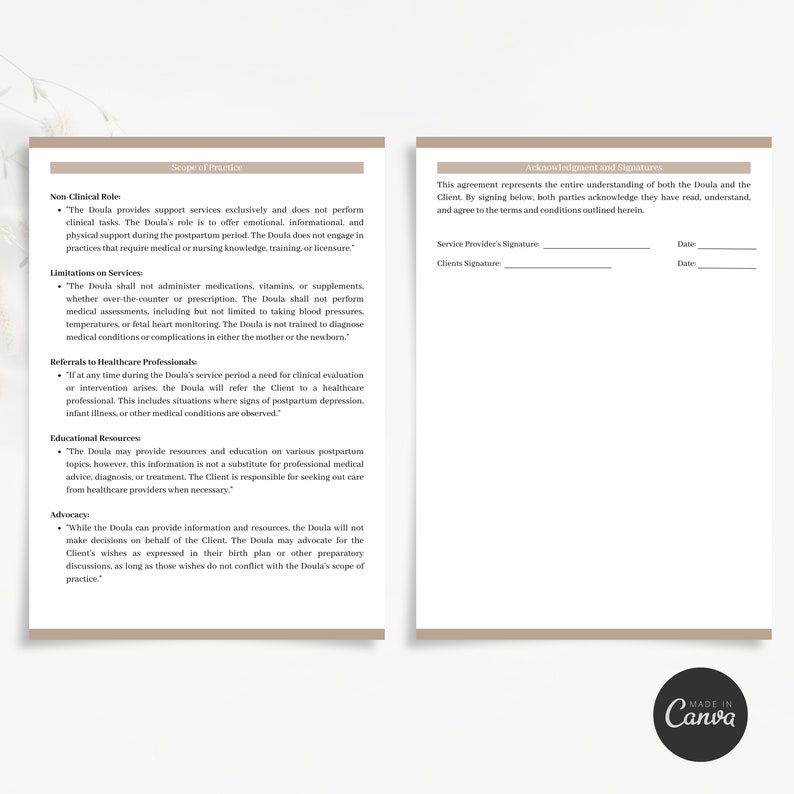 Postpartum Doula Contract Template Professional and Customizable