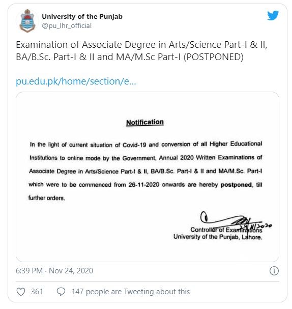 PU Lahore Postpones BA BSc Annual Exams 2020 All Pakistan Exam Results
