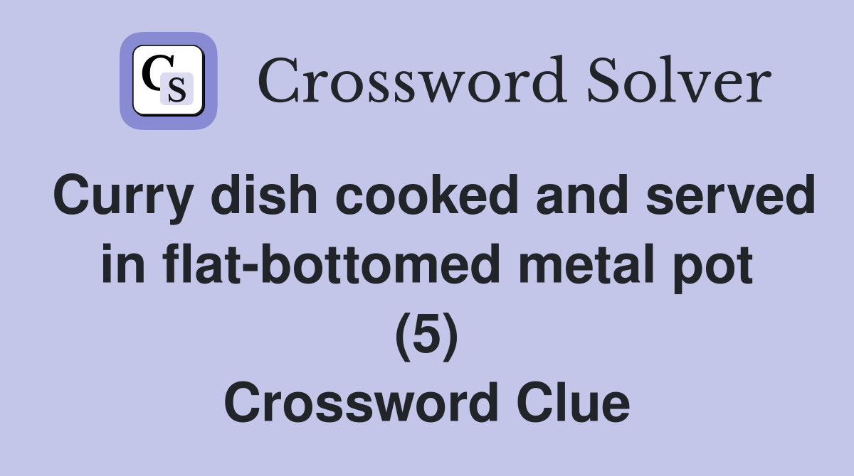 Curry dish cooked and served in flat bottomed metal pot (5) Crossword