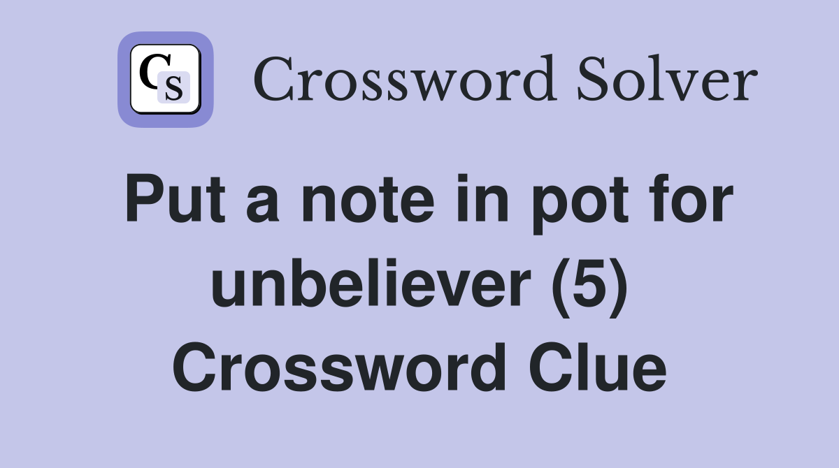 Put a note in pot for unbeliever (5) Crossword Clue Answers