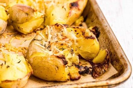 Crispy Smashed Potatoes (garlic parmesan flavor) The Chunky Chef