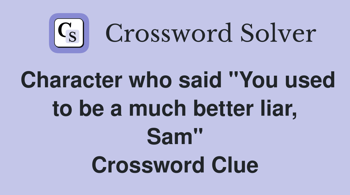 Character who said quot You used to be a much better liar Sam quot Crossword